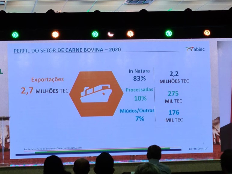 Mercado – Em relação ao mercado internacional, o presidente da Associação Brasileira das Indústrias Exportadoras de Carne (Abiec), Antonio Jorge Camardelli, trouxe dados das exportações brasileiras de carne bovina que apresentaram aumento de 2,2% no faturamento entre janeiro e maio de 2021, somando US$ 3,2 bilhões em comparação com o mesmo período do ano passado.
