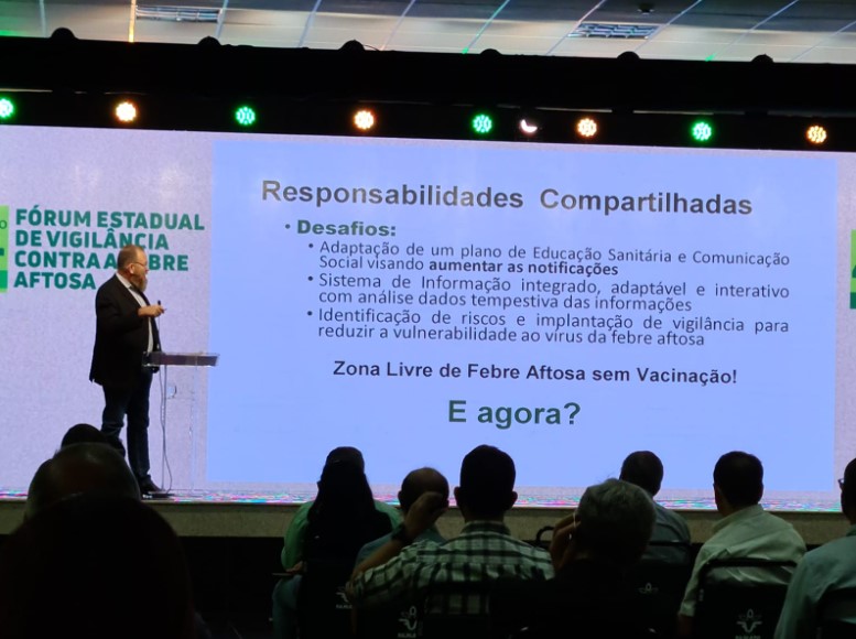 Ao falar sobre o tema “Zona Livre de Febre Aftosa sem vacinação! E agora?”, o presidente da Agência de Defesa Sanitária Agrossilvipastoril de Rondônia (Idaron), Júlio Cesar Rocha Peres, explicou que o reconhecimento também impõe desafios e, portanto, será necessário manter o rigor nos cuidados sanitários. Neste caso, segundo ele, o produtor rural terá papel ainda mais importante para garantir a manutenção desse novo status sanitário. “O produtor rural, que sempre esteve engajado nas ações desenvolvidas pelos setores públicos e privados continuará a ter grande importância na prevenção de doenças”, salientou.