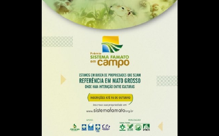 O Sistema Famato está em busca de bons exemplos de diversificação de produção. A segunda edição do Prêmio Sistema Famato em Campo, que está com inscrições abertas, vai reconhecer as propriedades mato-grossenses que trabalham com atividades diversificadas, de agricultura, pecuária, floresta plantada e agroindústria. A interação entre as atividades será um diferencial. As boas práticas agropecuárias, gestão econômica e socioambiental também serão levadas em consideração.